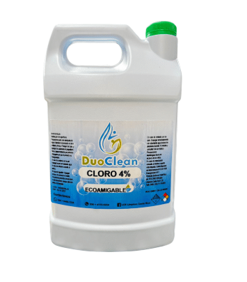 El Cloro Duoclean al 4% es un desinfectante de uso general que actúa también como blanqueador. Su fórmula está diseñada para eliminar microorganismos en una amplia variedad de superficies, haciendo de este producto una solución versátil para hogares, comercios e industrias.